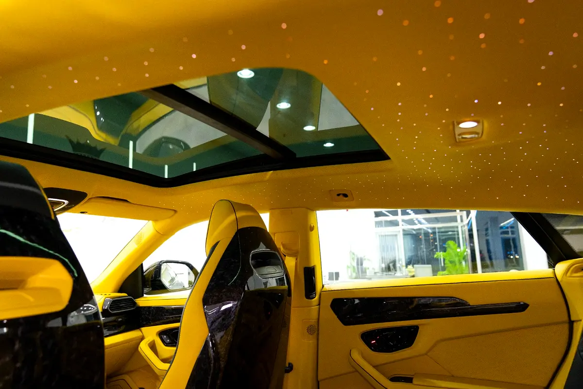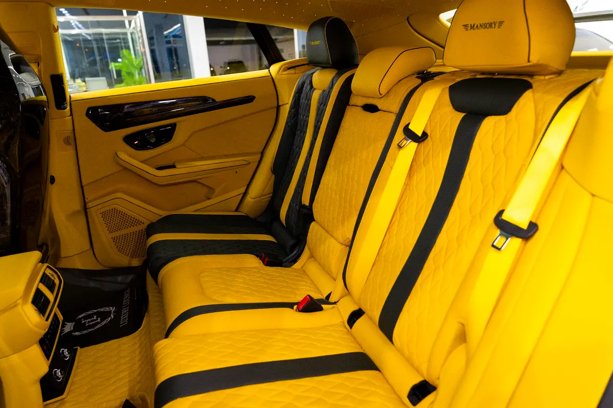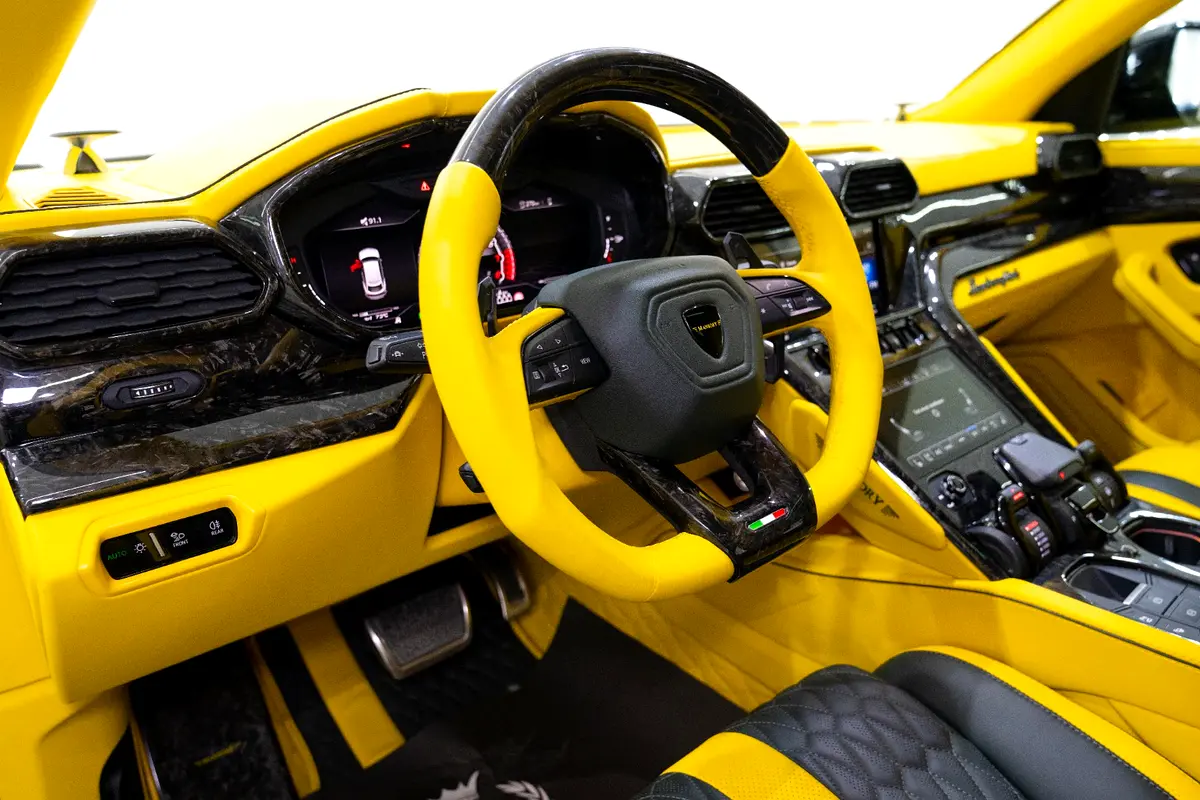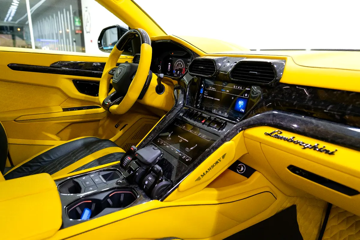 This Pre-Owned 2021 Lamborghini Urus Mansory Venatus, featuring a custom Matte Green Exterior with Yellow Accents and a striking Yellow Leather Interior with Starlight Roof, is now available for sale at Luxury Lounge car showroom on Sheikh Zayed Road, Dubai, UAE. This Urus features the Venatus Full Body Kit, dramatically enhancing its performance presence with aggressive aerodynamics, exposed carbon fiber elements, wider stance, and signature Venatus styling. The combination of Mansory craftsmanship, Lamborghini engineering, and bespoke custom touches results in a one-of-a-kind luxury SUV with supercar performance.