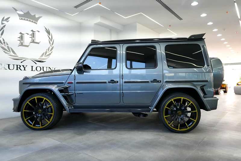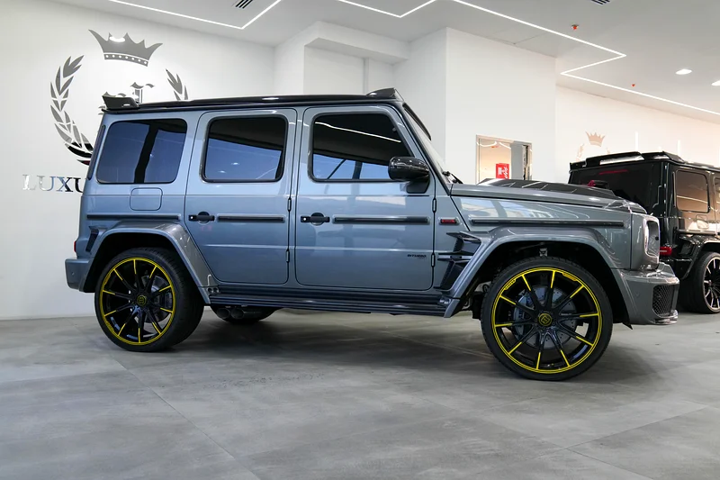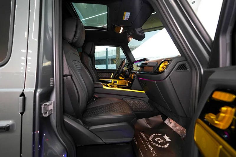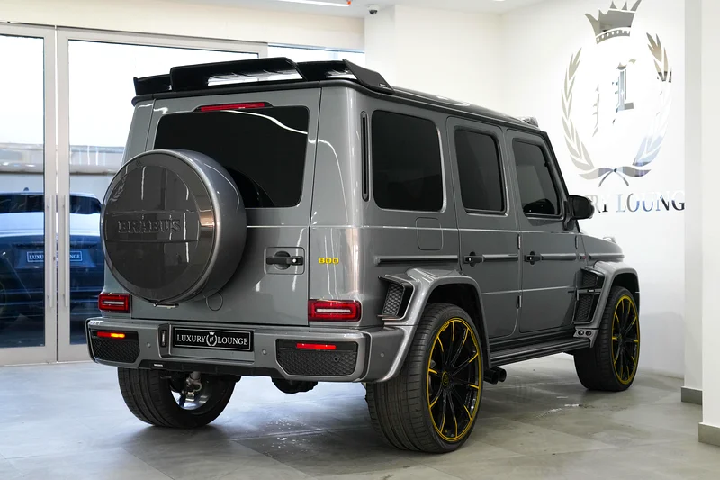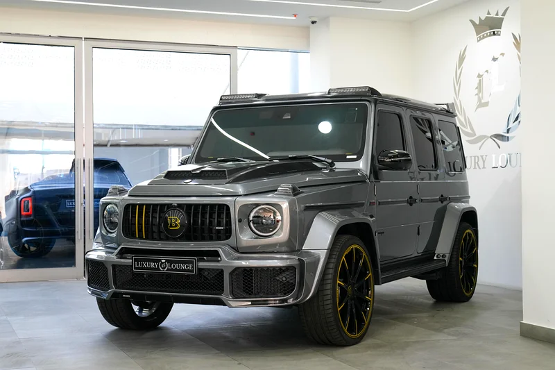 This Brand-New Brabus G800 Biturbo 2024 is now available for sale at Luxury Lounge car showroom, along Sheikh Zayed Road, Dubai, UAE. Featuring a glossy grey exterior and black leather interior with gold accents. Only 900 km. In excellent condition.