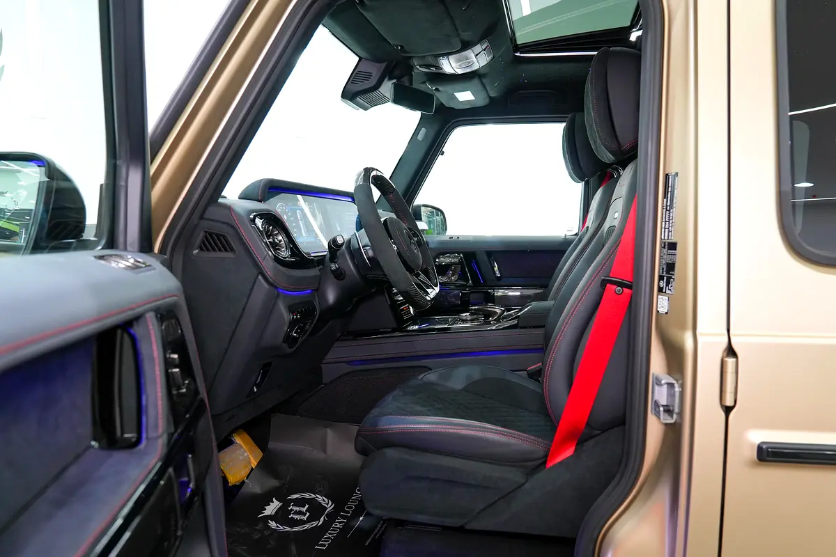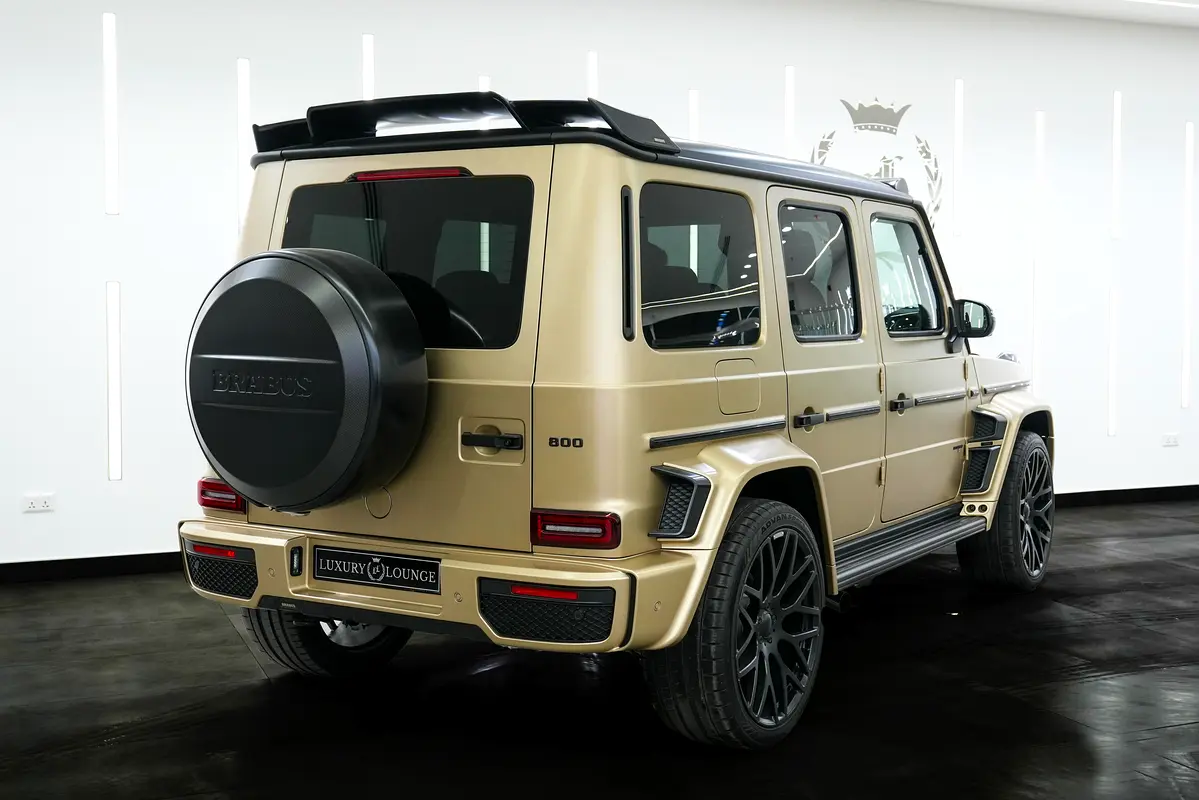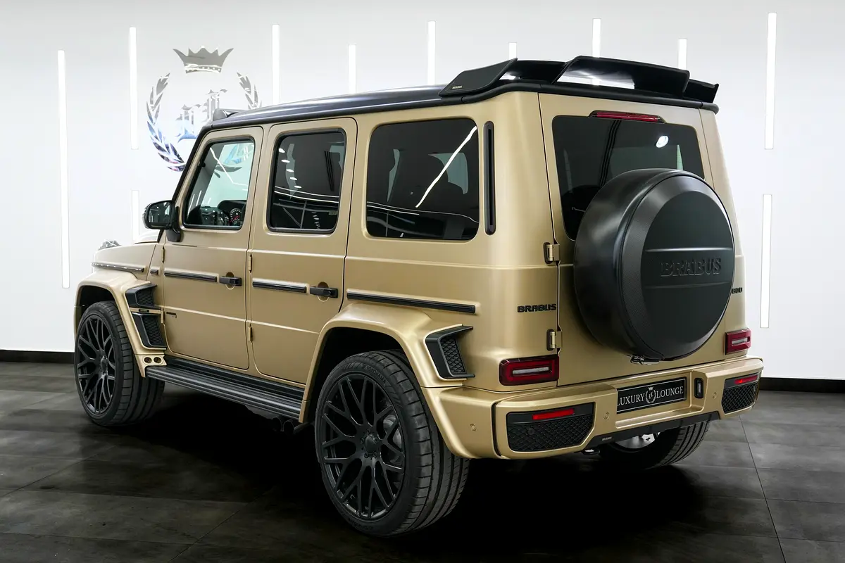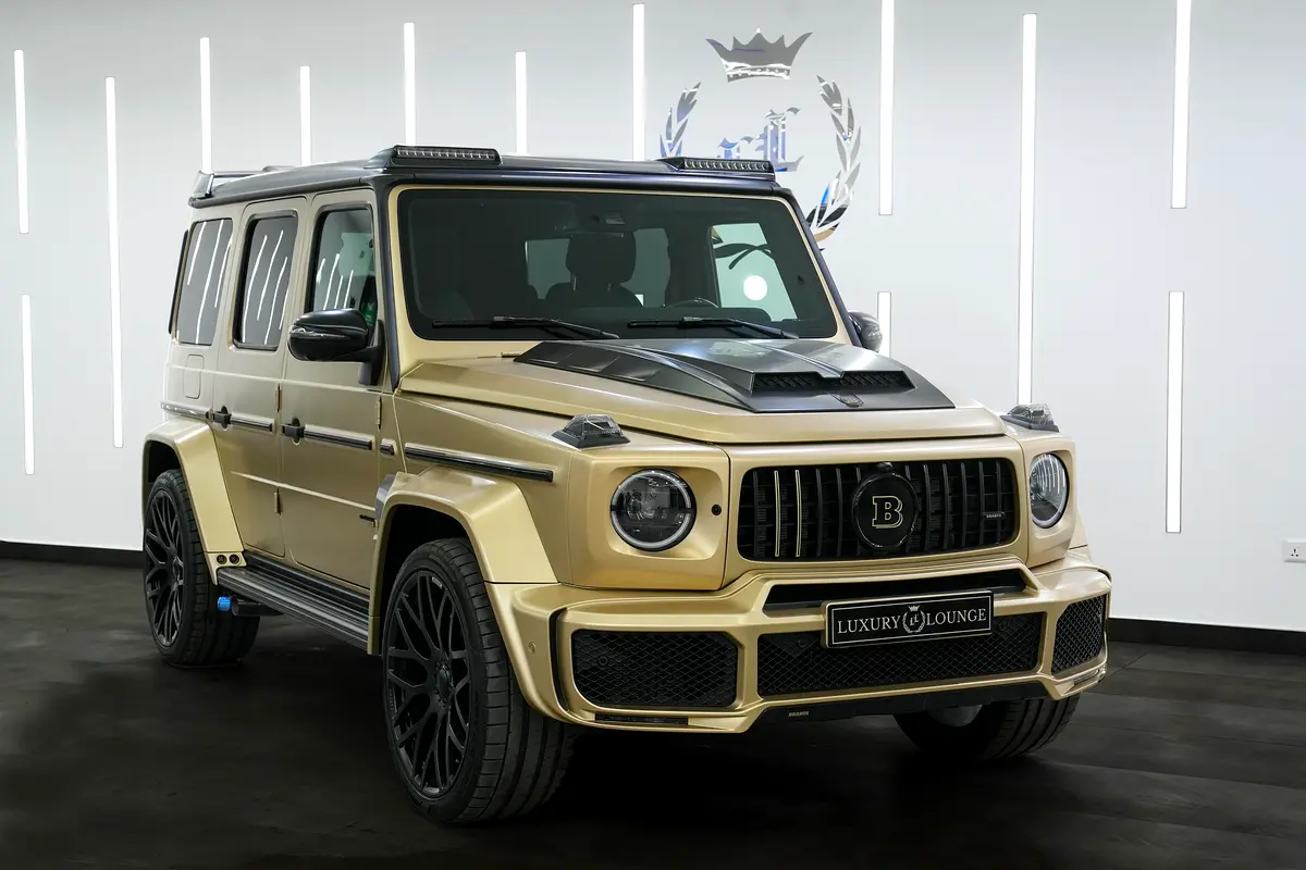 This brand-new Mercedes-Benz G63 BRABUS 2024 (0 KM) is now available for sale at Luxury Lounge, located along Sheikh Zayed Road, Dubai, UAE. Finished in an exclusive Gold exterior paired with a Black leather interior, this vehicle is delivery-condition with zero mileage and presented in showroom-perfect condition. The G63 BRABUS is equipped with an advanced Active Ride Control suspension system with hydraulic roll stabilization, delivering outstanding ride comfort, sharp handling, and uncompromised off-road capability—true to the legendary G-Class, enhanced by BRABUS engineering.