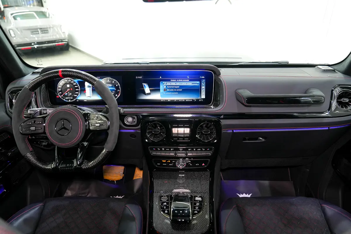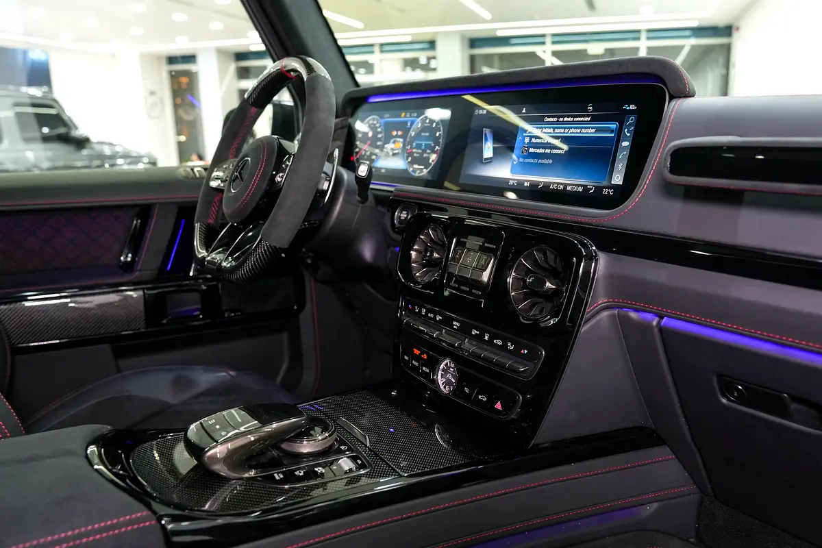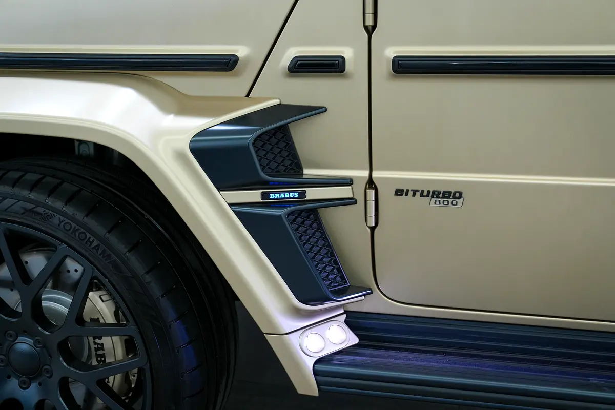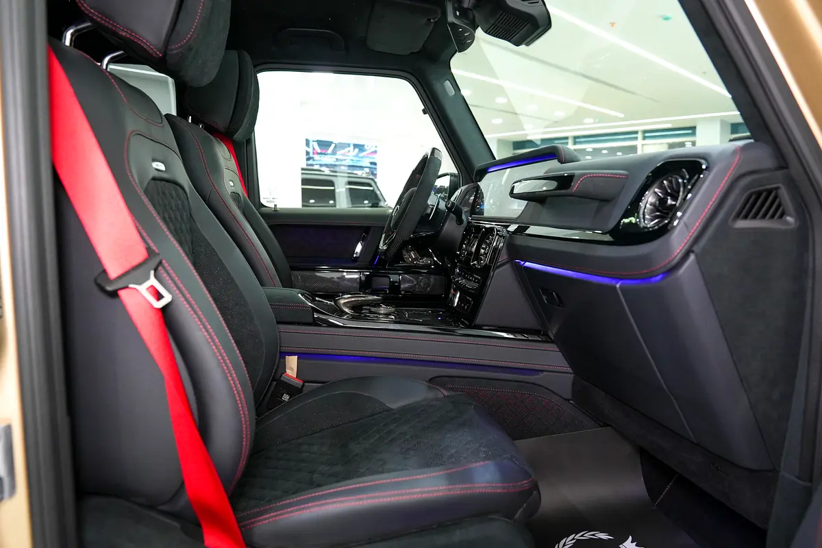 This brand-new Mercedes-Benz G63 BRABUS 2024 (0 KM) is now available for sale at Luxury Lounge, located along Sheikh Zayed Road, Dubai, UAE. Finished in an exclusive Gold exterior paired with a Black leather interior, this vehicle is delivery-condition with zero mileage and presented in showroom-perfect condition. The G63 BRABUS is equipped with an advanced Active Ride Control suspension system with hydraulic roll stabilization, delivering outstanding ride comfort, sharp handling, and uncompromised off-road capability—true to the legendary G-Class, enhanced by BRABUS engineering.