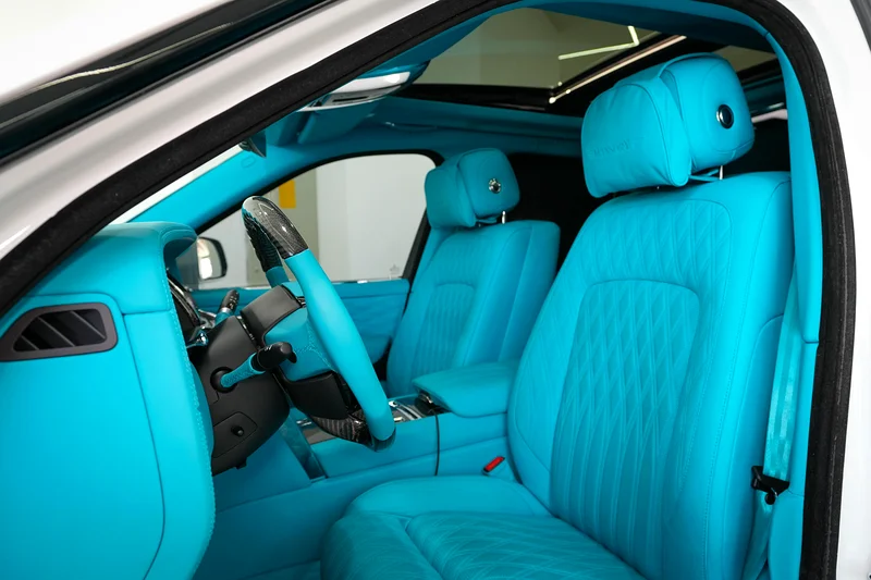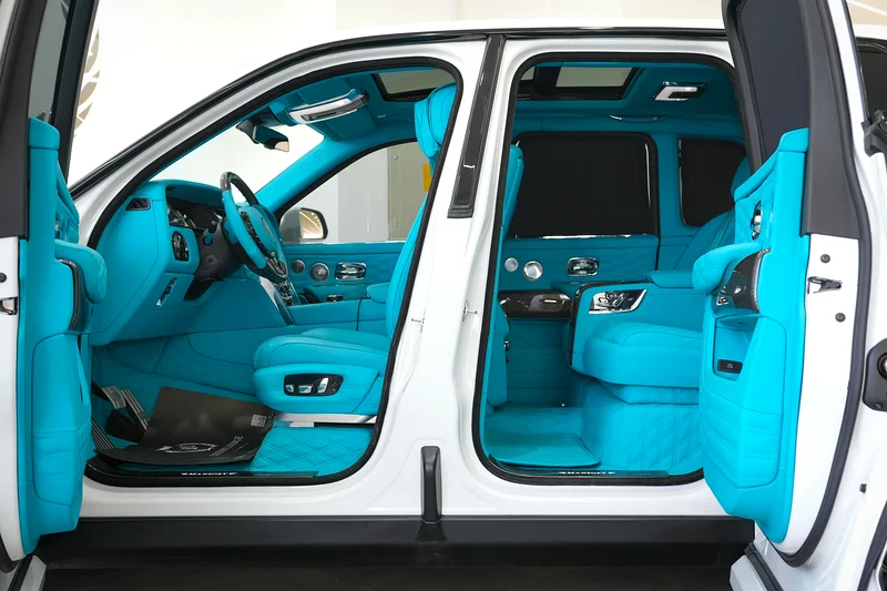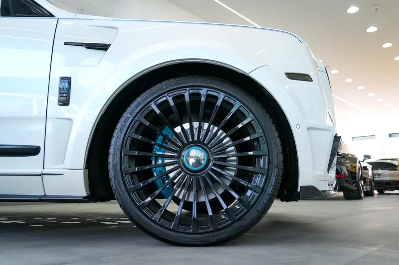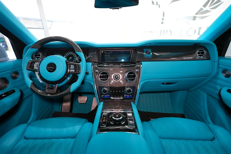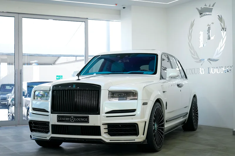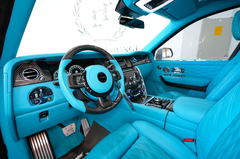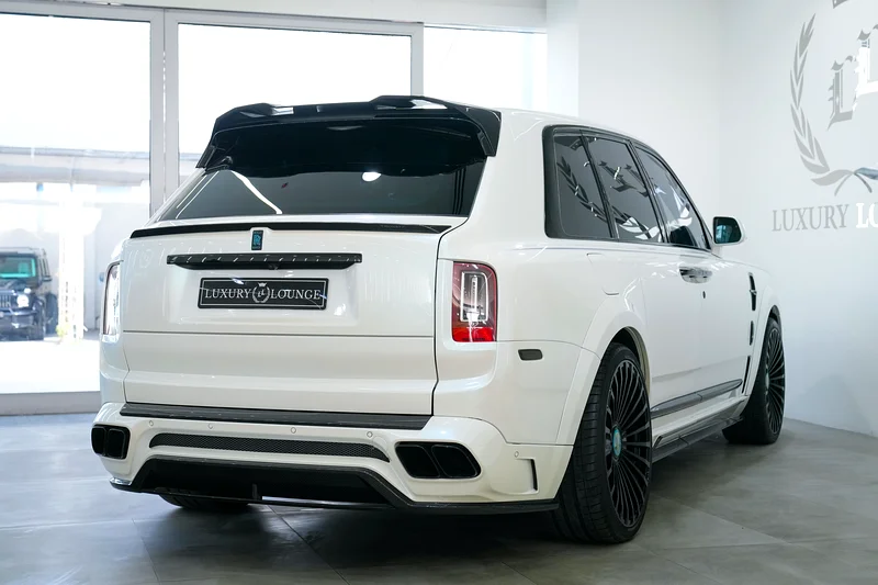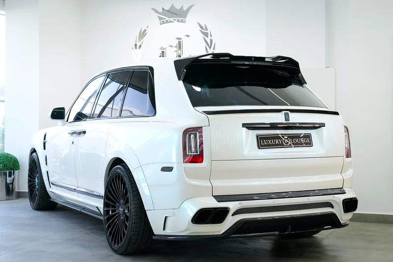 This Rolls-Royce Original Mansory 2019 is now available at Luxury Lounge car showroom, along Sheikh Zayed Road Dubai UAE. White exterior and Blue interior. In Excellent condition. The Cullinan Mansory is engineered for those who demand smooth authority with a sportier soul. Under the hood, the renowned 6.75-liter twin-turbocharged V12 engine has been tuned by Mansory to deliver over 600 horsepower, matched to an 8-speed automatic transmission and all-wheel drive system.